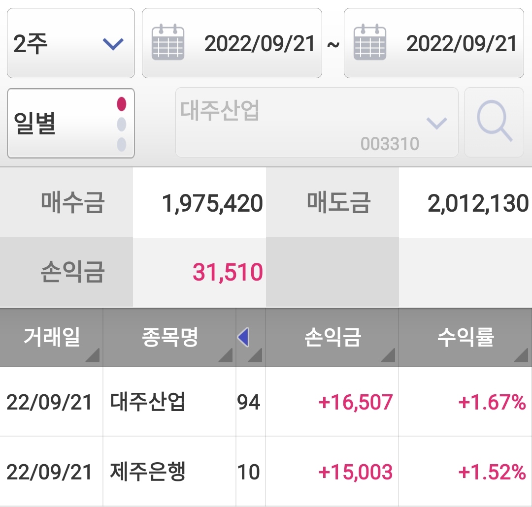 오늘은 두 종목 매매했는데요. 둘 다 수익 예에~~