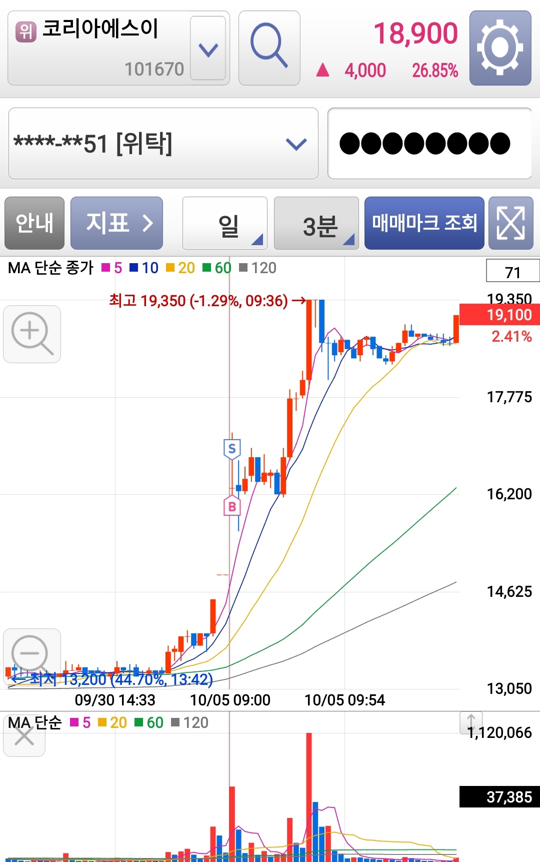 시가 배팅 주문을 걸어 놓았는데 체결이 되지않고 장이 시작되어서, 바로 시장가로 매수했는데 조금 낮게 매수가 더 잘 되었네요.