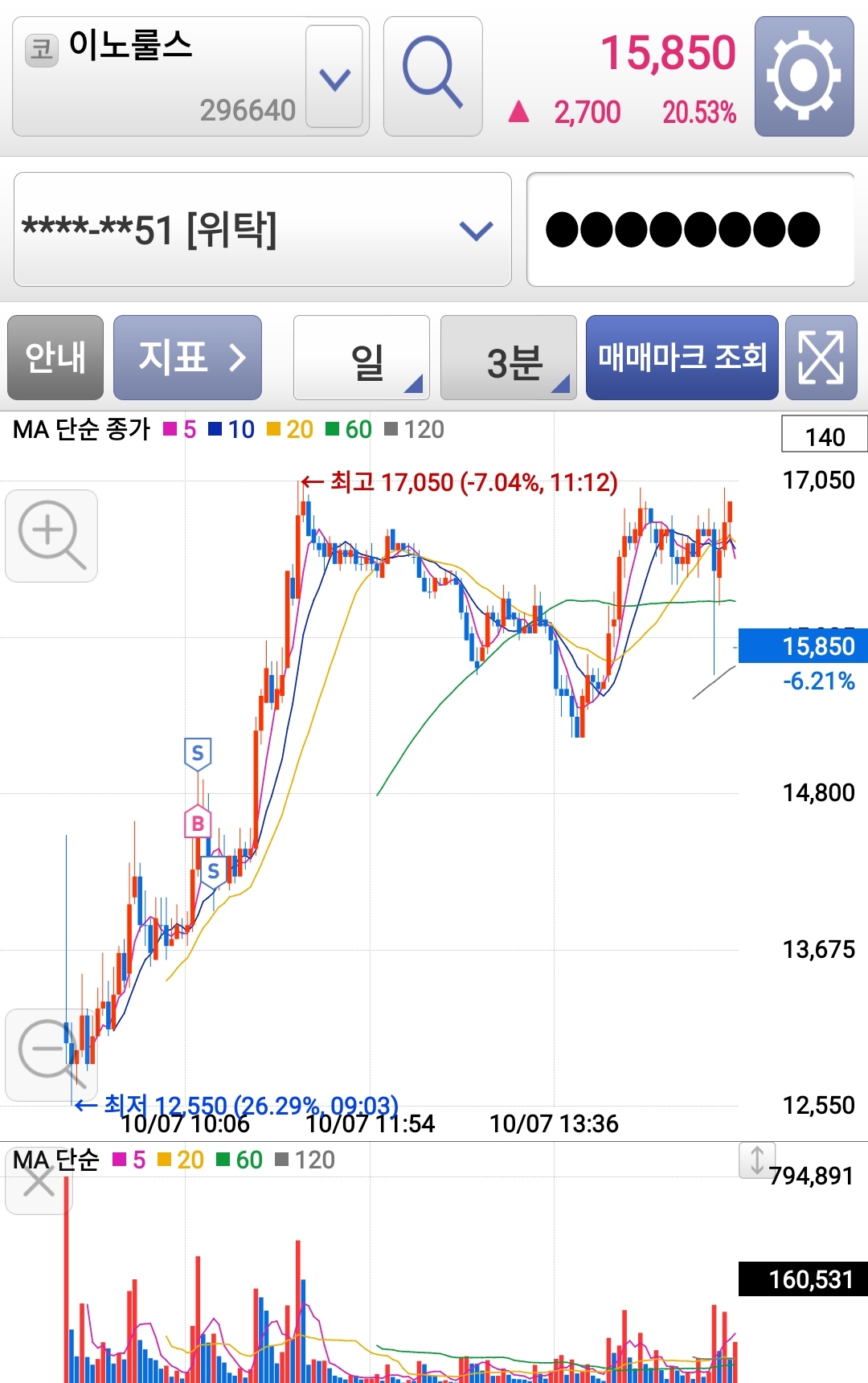오늘 이노룰스는 확실히 뇌동이지만 제주은행은 기준봉 매매로 접근 자체는 괜찮았지만 손절을 못해서 정말 아쉬웠네요.