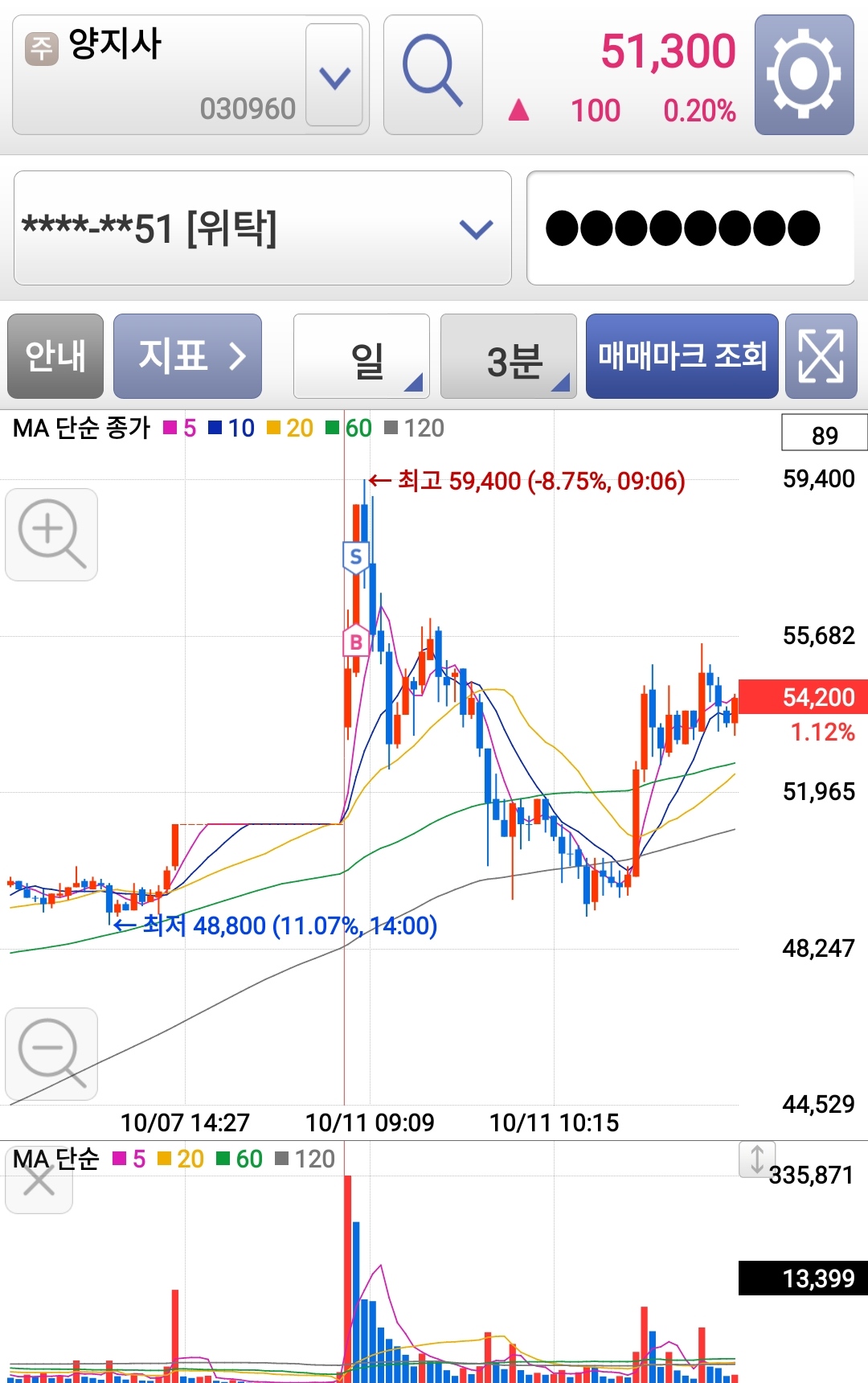 완전 뇌동입니다. 3번 매매해서 만들어 놓은 수익 싹 날려 먹었네요.