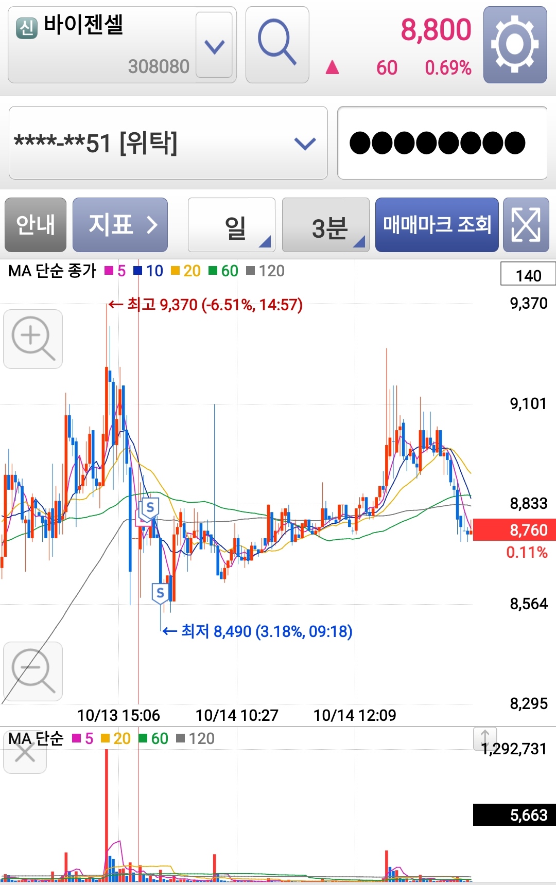 그래도 기준봉 매매 할 만한 종목이라고 생각하고 진입했습니다.